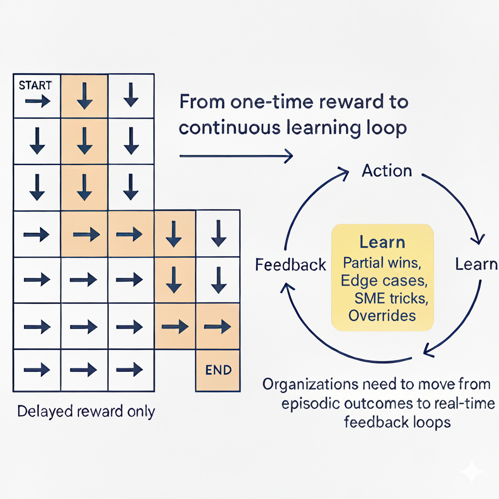 If reinforcement learning is hard for models, it’s even harder for enterprises because the feedback loop isn’t just delayed, it isn’t reflected.